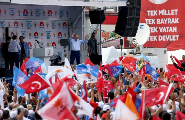 Cumhurbaşkanı Erdoğan, vatandaşlara "24 Haziran'da güçlü Meclis için cumhurbaşkanlığında şahsımı, Meclis'te AK Parti'yi desteklemeye hazır mıyız? " diye sordu.