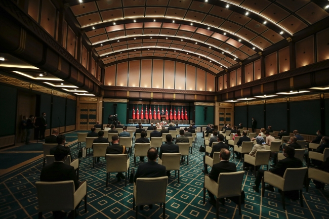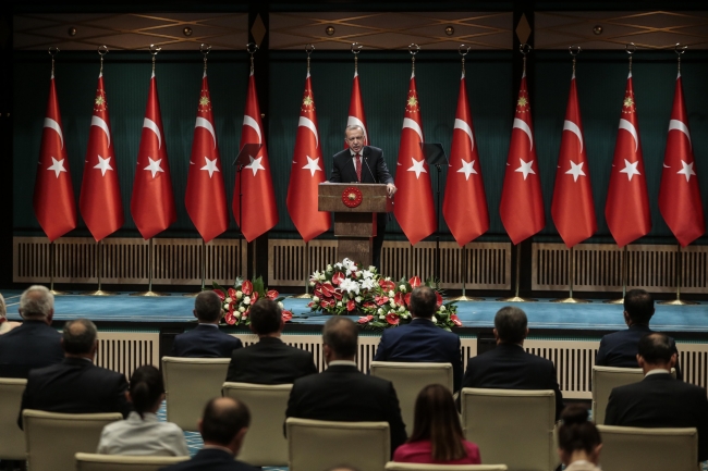 Cumhurbaşkanı Erdoğan, "Ülkemiz, milyon kişi başına düşen vaka sayısında 73'üncü, milyon kişi başına düşen ölüm oranında 57'nci sıradadır. Bu dönem sona erdiğinde, Türkiye dünyada salgını en az hasarla atlatan ülkelerden biri olacaktır." diye konuştu.