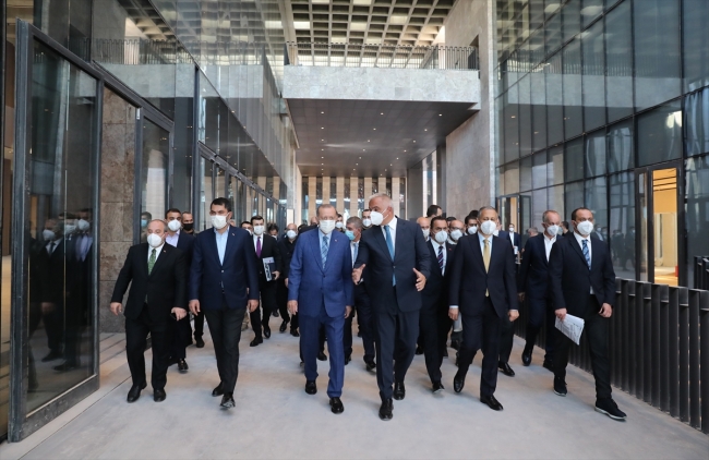 Cumhurbaşkanı Erdoğan, AKM'de yaklaşık 30 dakika süren incelemelerinin ardından Türkiye'nin en büyük kütüphanesini kurmak için çalışmaların sürdürüldüğü Rami Kışlası'na hareket etti.
