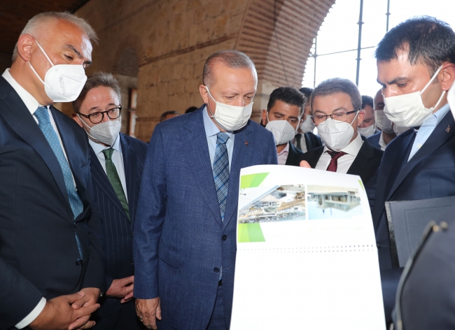 Cumhurbaşkanı Recep Tayyip Erdoğan'a incelemeleri sırasında, Kültür ve Turizm Bakanı Mehmet Nuri Ersoy, Sanayi ve Teknoloji Bakanı Mustafa Varank, Ulaştırma ve Altyapı Bakanı Adil Karaismailoğlu, Cumhurbaşkanlığı İletişim Başkanı Fahrettin Altun ile İstanbul Valisi Ali Yerlikaya eşlik etti.