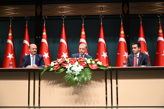 Erdoğan, Cumhurbaşkanlığı Külliyesi'nde, Çalışma ve Sosyal Güvenlik Bakanı Vedat Bilgin ve Türkiye İşveren Sendikaları Konfederasyonu (TİSK) Başkanı Özgür Burak Akkol ile düzenlediği basın toplantısında, her sene olduğu gibi bu yıl da gelecek yılın asgari ücretini belirlemek üzere, çalışan ve işveren temsilcilerinin, Çalışma ve Sosyal Güvenlik Bakanı Bilgin'in nezaretinde bir araya geldiğini söyledi.