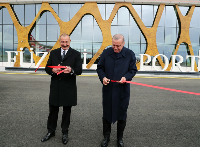 Erdoğan ve Aliyev kurdele kesimi ile birlikte havalimanının açılışını gerçekleştirdi.