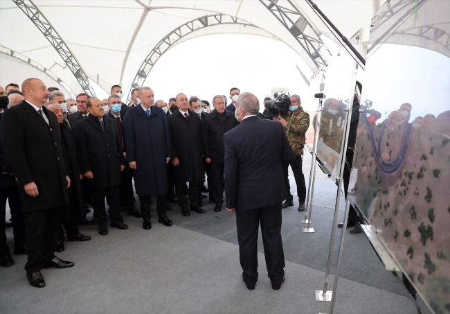 Cumhurbaşkanı Erdoğan ile Çevre ve Şehircilik Bakanı Murat Kurum, Dışişleri Bakanı Mevlüt Çavuşoğlu, Milli Savunma Bakanı Hulusi Akar, Ulaştırma ve Altyapı Bakanı Adil Karaismailoğlu, Cumhurbaşkanlığı İletişim Başkanı Fahrettin Altun ve Cumhurbaşkanlığı Sözcüsü İbrahim Kalın da Azerbaycan'a gitti.