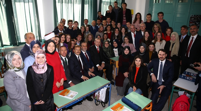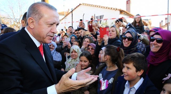 Erdoğan, cuma namazının ardından yürüyerek Kırmahalle'deki Celal Bayar Azınlık Ortaokul ve Lisesi'ne gitti. Yürüyüşü sırasında vatandaşlar, Erdoğan'a sevgi gösterisinde bulundu.