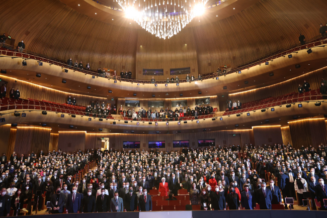 AKM'nin açılış kurdelesini, Cumhurbaşkanı Erdoğan, Cumhurbaşkanı Yardımcısı Fuat Oktay, TBMM Başkanvekili Celal Adan, MHP Genel Başkanı Devlet Bahçeli, BBP Genel Başkanı Mustafa Destici, İçişleri Bakanı Süleyman Soylu, Kültür ve Turizm Bakanı Mehmet Nuri Ersoy, Çevre Şehircilik ve İklim Değişikliği Bakanı Murat Kurum, Aile ve Sosyal Hizmetler Bakanı Derya Yanık, Gençlik ve Spor Bakanı Mehmet Kasapoğlu ve bazı katılımcılar kesti.