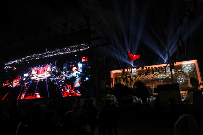 [Fotoğraf: AA]AKM çevresinde güvenlik önlemleri alınırken, Taksim Meydanı ve çevresindeki yollarda çok sayıda vatandaş, töreni meydana kurulan dev ekranlardan izliyor.