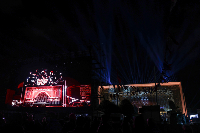 Cumhurbaşkanı Erdoğan, açılışa katılan davetlilerle birlikte tören için hazırlanan Atatürk Kültür Merkezi lazer ve ışık gösterisini izledi.