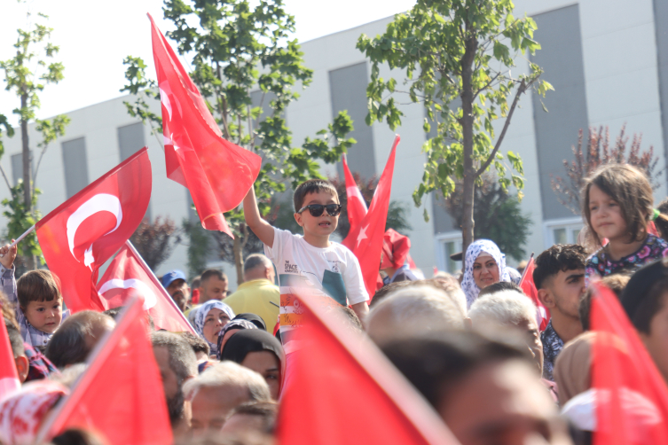 "Bunlar, talimatı Kandil'den alıyor. Kandil'deki terörist başlarının bayrağı var mı, onların ezanı var mı, onların Kur'an'ı var mı? Kardeşlerim, işte karşımda bayrağı olanlar, ezanı olanlar, kitabı olanlar. Hep birlikte haykıralım. Tek millet, tek bayrak, tek vatan, tek devlet. Bir olacağız, iri olacağı, diri olacağız, kardeş olacağız, hep birlikte Türkiye olacağız. Defne Devlet Hastanemiz, sadece Defnemize değil tüm Hatayımıza hayırlı olsun inşallah."