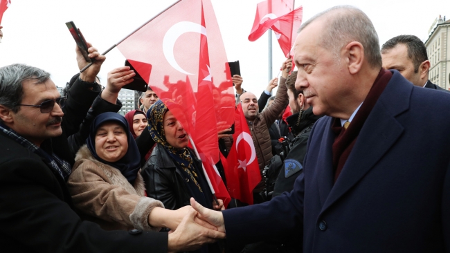 Erdoğan'ı otelin önünde beklediler
