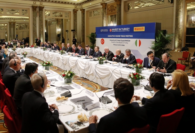 Cumhurbaşkanı Erdoğan, Roma'daki temasları kapsamında, İtalya'nın önde gelen şirketlerin yöneticileriyle yemekte bir araya geldi.