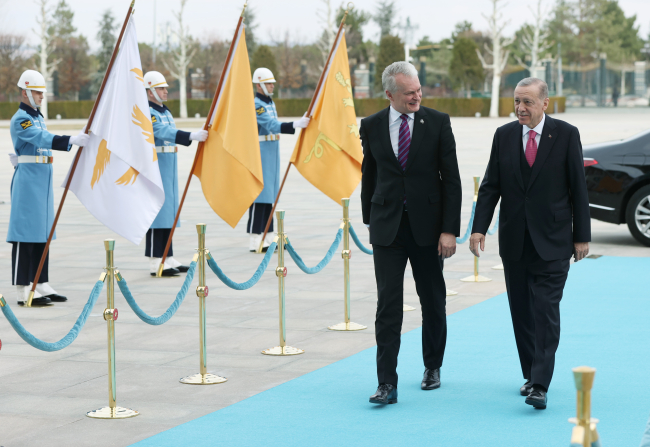 Erdoğan, Litvanya Cumhurbaşkanı Nauseda'yı Cumhurbaşkanlığı Külliyesi'nde karşıladı.