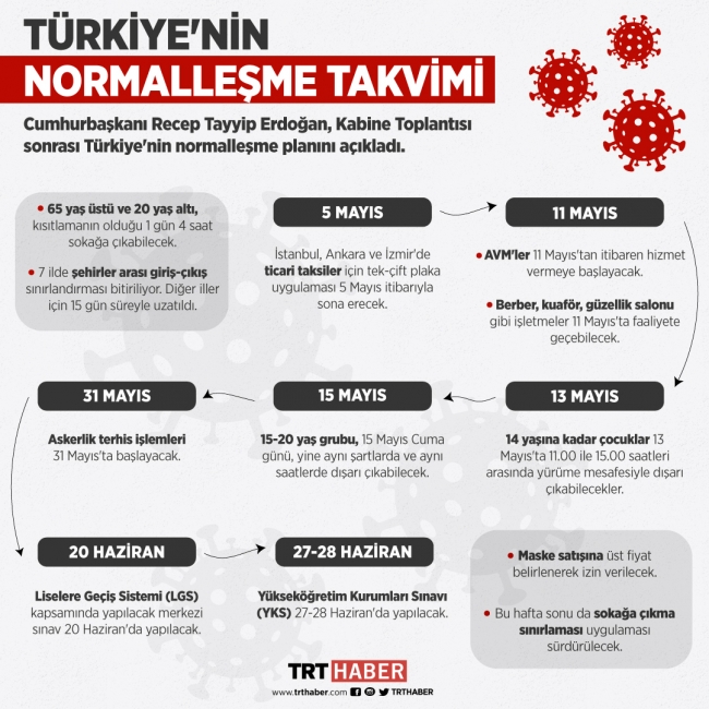 Cumhurbaşkanı Erdoğan, normal hayata dönüşün kademe kademe başlatılacağını belirterek, bir normalleşme planının hazırlandığını bildirdi.