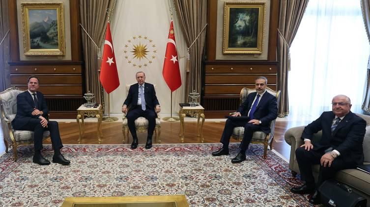 İletişim Başkanlığından yapılan açıklamaya göre, Cumhurbaşkanı Erdoğan, NATO Genel Sekreteri Mark Rutte'yi Cumhurbaşkanlığı Külliyesi'nde kabul etti.
