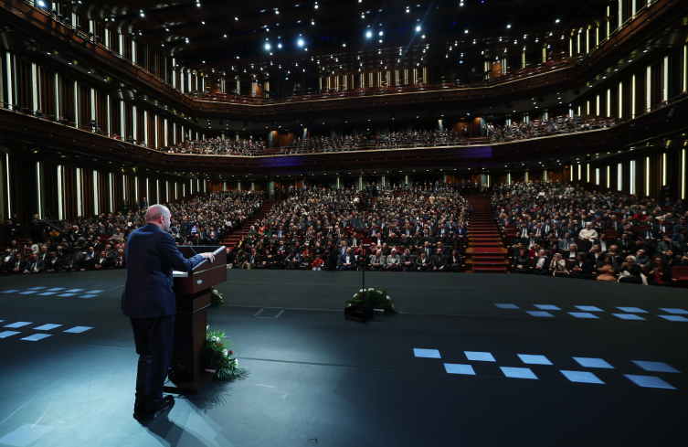 Türkiye'nin mimari eserleriyle, musiki gelenekleriyle, el işi sanatlarıyla, edebi ve kültürel ürünleriyle yalnızca mücavir coğrafyasında değil, dünyada parmakla gösterilen bir konumda ve haklı bir şöhrete sahip olduğunu dile getiren Erdoğan, sözlerini şöyle sürdürdü:
