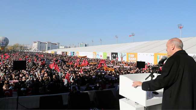 Türkiye'nin uzun yıllar boyunca sancısını çektiği yokluk, yoksulluk, baskı, zulüm kavga ve çekişme gibi her biri milletimizin enerjisini sömüren günleri geride bıraktık. Bu ülkede terör var mıydı? Güneydoğu, Doğu Anadolu maalesef tamamıyla teröre mahkum edilmiş miydi? Şimdi artık terörü yok ettik. Cudi'de, Gabar'da, Tendürek'te, Besler Deresi'nde terörü yok ettik. Artık Doğu'da, Güney Doğu'da vatandaşlarım gece saatlerinde rahatlıkla sokaklara, mahalleye çıkabiliyor. AK Parti budur, Cumhur İttifakı budur ve güçlenerek yarınlara yürüyoruz.