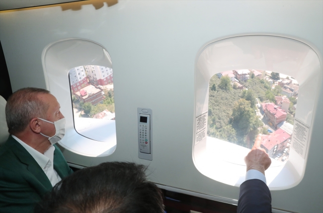 Cumhurbaşkanı Erdoğan, Giresun'da meydana gelen sel felaketi bölgesini havadan inceledi.