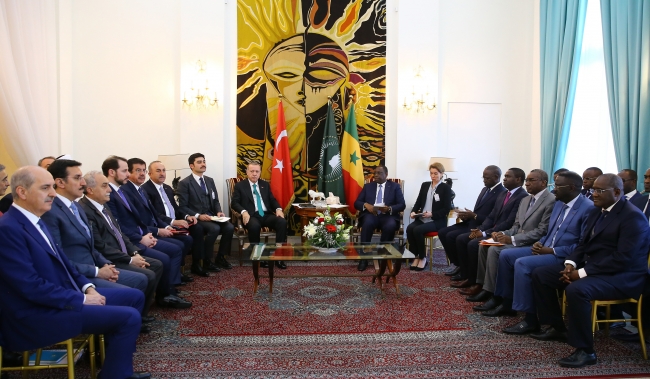Senegal'i bir kez daha ziyaret etmekten büyük mutluluk duyuyorum. Senegal siyasi ve ekonomik istikrarı demokrasi ile kıtada örnek bir ülke. Bölgesinde barışa da önemli katkılarda bulunmaktadır. Senegal'in başta kendi çehresi olmak üzere kıtadaki genelindeki öncü rolünü biliyor takdirle karşılıyoruz.
