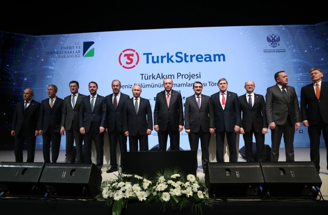 Projede Türkiye'ye gaz sağlayacak ilk hattın deniz kısmının tamamlanması dolayısıyla İstanbul Kongre Merkezi'nde düzenlenen törende, Erdoğan, Putin, Milli Savunma Bakanı Hulusi Akar, Ulaştırma ve Altyapı Bakanı Cahit Turhan, Hazine ve Maliye Bakanı Berat Albayrak, Cumhurbaşkanlığı Sözcüsü İbrahim Kalın, Rusya Dışişleri Bakanı Sergey Lavrov, İstanbul Valisi Ali Yerlikaya, İstanbul Büyükşehir Belediye Başkanı Mevlüt Uysal, eski bakanlar, iş insanları ve vatandaşlar yer aldı.