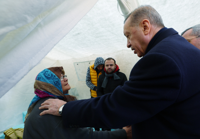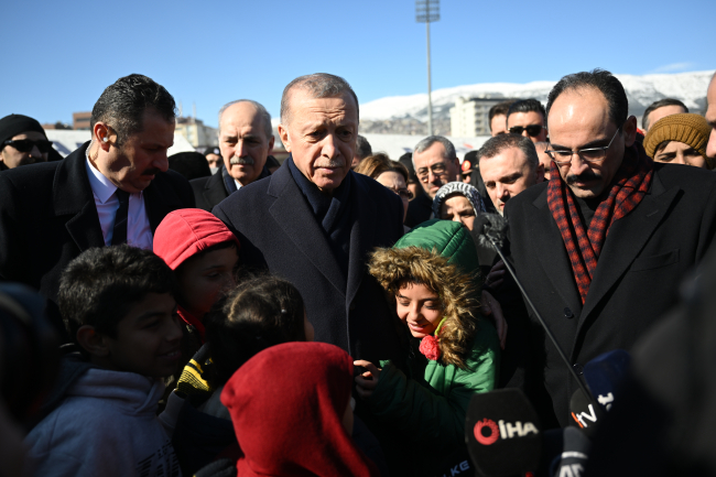 Burada incelemelerini sürdüren Cumhurbaşkanı Erdoğan, depremzedelerle bir araya gelerek, geçmiş olsun dileğinde bulundu.