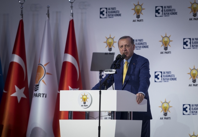 Delegelere ve tüm gönüldaşlarına kongreye ilgileri ve şahsına gösterdikleri teveccüh için teşekkür eden Erdoğan, 16 Nisan referandumunda gösterdikleri gayretler sebebiyle MHP Genel Başkanı Devlet Bahçeli, BBP ve HÜDAPAR'a teşekkür etti.