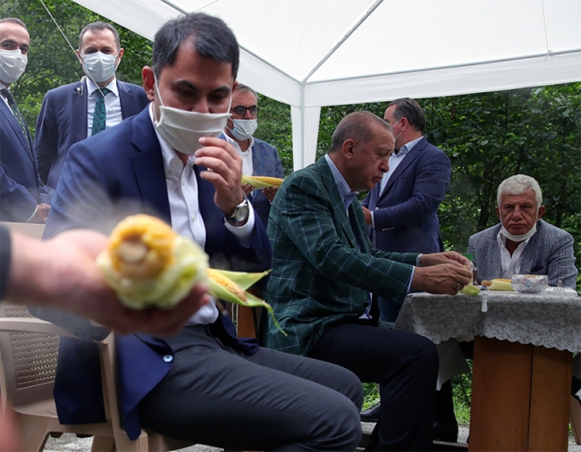 Cumhurbaşkanı Erdoğan, Ardeşen'den Ayder'e karayoluyla geçti. Yol kenarında mısır satan esnaf, konvoyu durdurdu. Esnafın bu isteğine kayıtsız kalmadı. Mısırdan gazetecilere de ikram etti.