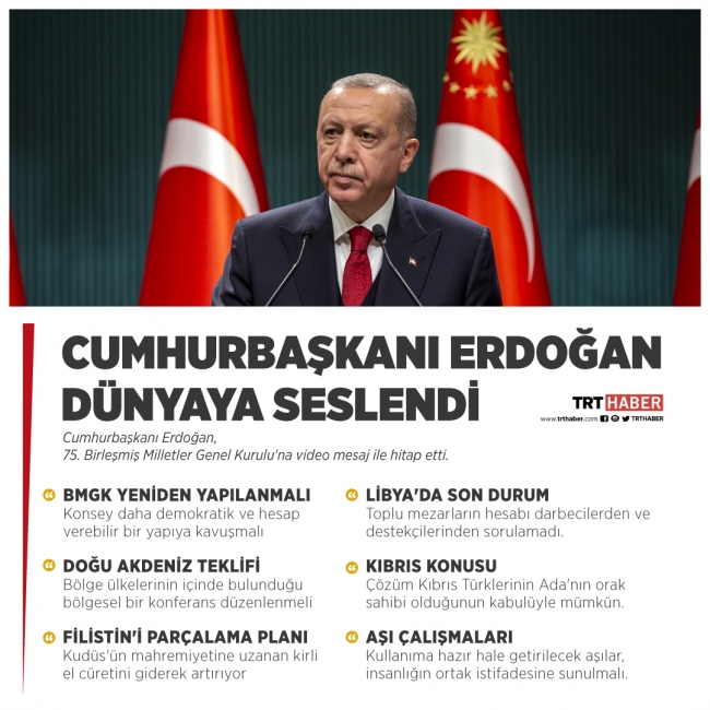 Cumhurbaşkanı Recep Tayyip Erdoğan, Birleşmiş Milletler (BM) Genel Kurulu'na video mesajla seslendi.