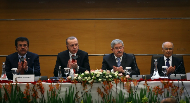 Erdoğan, "Bu kapsamda atılan önemli bir adımın müjdesini burada bir kez daha sizlerle paylaşmak istiyorum. Cezayir'in milli enerji şirketi SONATRAK ile ülkemizin önde gelen firmalarından olan Rönesans ve Bayegan arasında Adana'da Yumurtalık Serbest Bölgesinde 1 milyar dolarlık bir petro kimya yatırımı konusunda anlaşmaya varıldı. Yılda 450 bin ton polipropilen üretilecek bu tesisin ham maddesi elbette Cezayir'den tedarik edilecek. Bu tesisin faaliyete geçmesiyle ülkemizdeki cari açık noktasında da ciddi bir sıkıntıyı aşmış olacağız. Dışa bağımlılığı da yüzde 25 oranında azaltmış olacağız" ifadelerini kullandı.