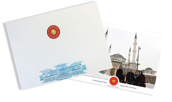 Beştepe Millet Camii önünde ziyaretçiler için fotoğraf hizmetinin sunulduğu belirtilen rehberde, çekilen fotoğrafların Cumhurbaşkanlığı Armasını taşıyan dosyada sahiplerine hediye edildiği ifade edildi.