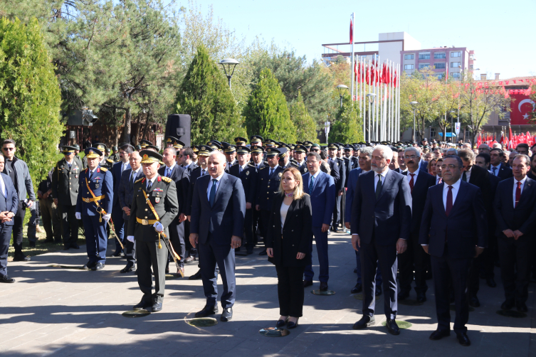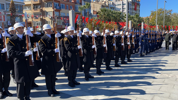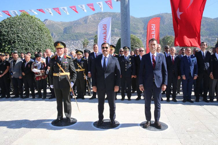 Cumhuriyet Meydanı'ndaki törende de Vali Mustafa Masatlı, Garnizon Komutanı Tuğgeneral Ali Mete ve Büyükşehir Belediye Başkan Vekili Armağan Teköz, Atatürk Anıtı'na çelenk sundu.