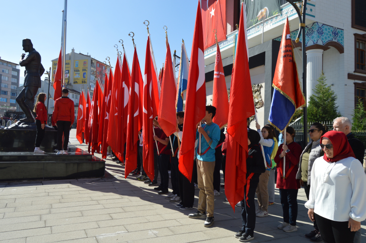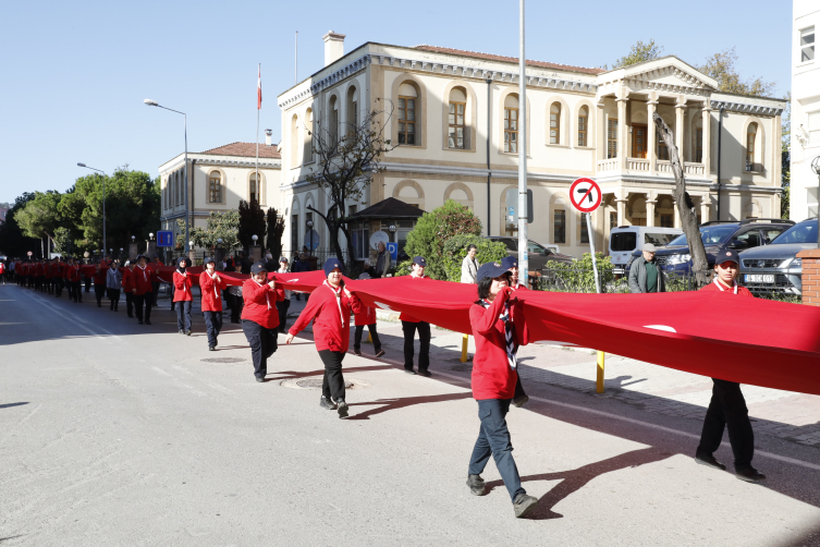 Vali Tavlı'nın, Şeref Defteri'ni imzalamasının ardından protokol üyeleri, vatandaşlar ve öğrencilerin katılımıyla 1919 metre uzunluğundaki Türk bayrağı açılarak "Cumhuriyet Yürüyüşü"ne geçildi.