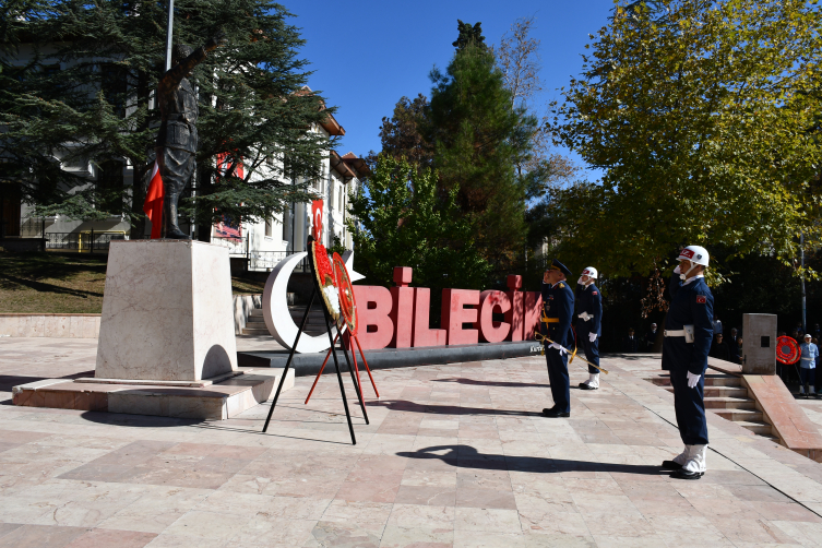 Cumhuriyet Meydanı'ndaki törende Bilecik Valisi Şefik Aygöl, Eskişehir Hava Savunma Komutanı Hava Tümgeneral Ertunç Ertufanlı ile Bilecik Belediye Başkanı Melek Mızrak Subaşı, Atatürk Anıtı'na çelenk bıraktı.