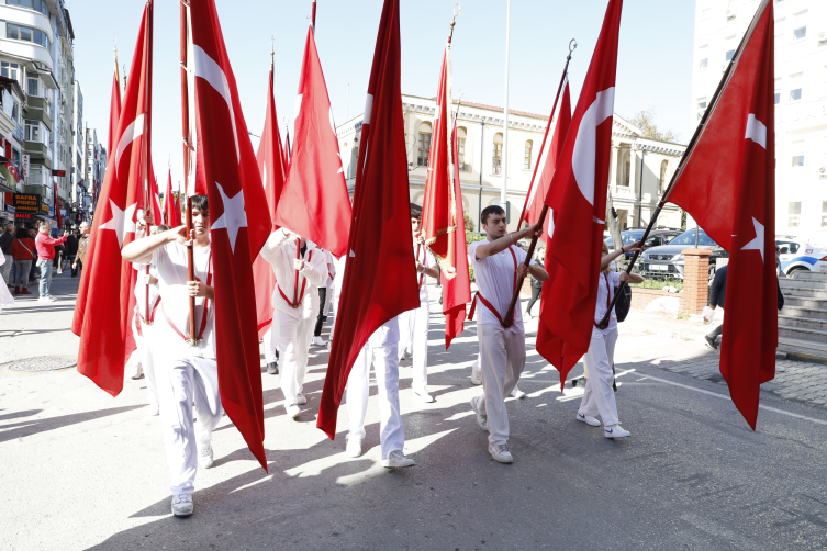 Samsun'da, 29 Ekim Cumhuriyet Bayramı kutlamaları kapsamında 1919 metre uzunluğundaki Türk bayrağıyla yürüyüş yapıldı.