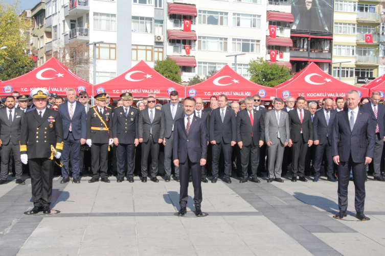 Kocaeli'de İzmit Kent Meydanı'nda düzenlenen törende, Atatürk Anıtı'na çelenk sunuldu.