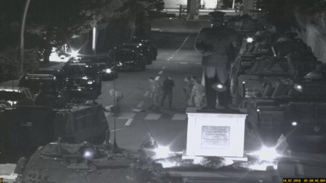Özel Kuvvetler Komutanlığı (ÖKK) personelinin karargahın kontrolünü sağladıktan sonra söz konusu zırhlı araçlardan bazılarının kuzey ve güney nizamiyelere yöneldikleri kameralara yansıdı.