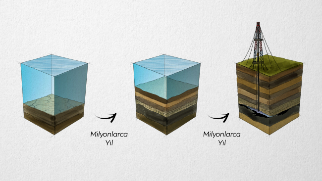 Milyonlarca yıldır deniz dibinde yaşayan canlıların kalıntıları, akarsular aracılığıyla taşınan kum ve kil birikintilerinin deniz tabanına çökmesi sonucu yüksek basınç ve sıcaklık altında sıkışır. Bu kalıntılar zamanla mikroorganizmaların da etkisiyle değişim geçirerek petrol ve doğalgaz gibi fosil yakıtlarını oluşturur.