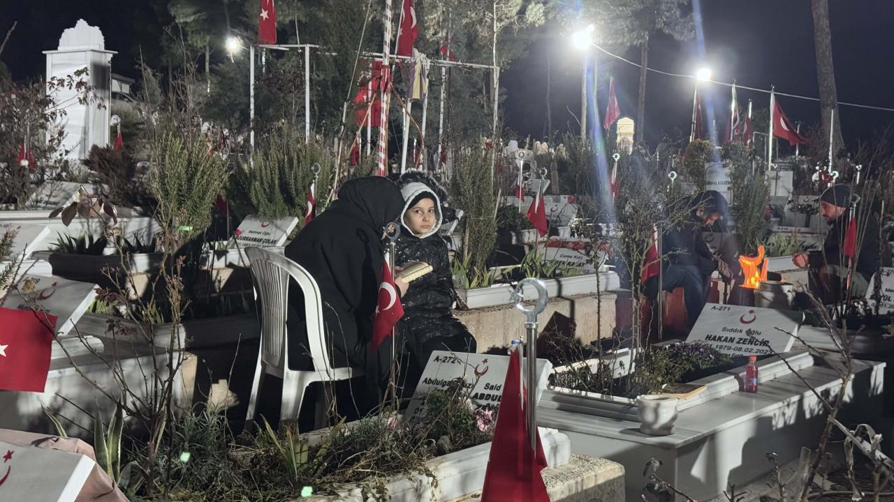 Gecenin karanlığına rağmen Kahramanmaraş Kapıçam Şehir Mezarlığı'na giden vatandaşlar yakınlarının kabirlerini sulayıp çiçek bıraktı.