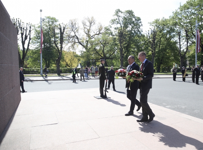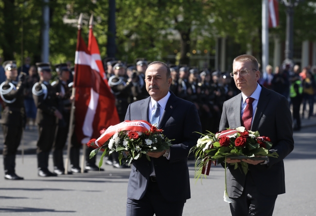 Letonya Dışişleri Bakanı Edgards Rinkevics eşliğinde Özgürlük Anıtı'na çelen koyan Çavuşoğlu, burada saygı duruşunda bulundu ve her iki ülkenin milli marşları okundu.