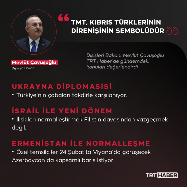 Dışişleri Bakanı Mevlüt Çavuşoğlu: TMT, KKTC'nin Kuvayi Milliye'sidir. TMT'nin illegal işlerle anılması hepimizi üzer. Kıbrıs bir milli politikadır, Kıbrıs davası hepimizin davasıdır.https://t.co/WE1dZHQQDM pic.twitter.com/9ftI8yukTA