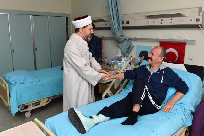 Başkan Erbaş, ziyareti esnasında gazilere Kur’an-ı Kerim ve İslam İlmihali hediye etti.