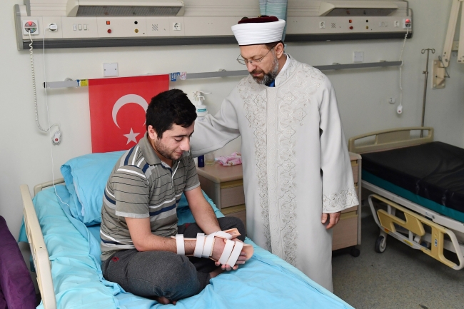 Başhekim Gökkaya ise Başkan Erbaş’a ziyaretinden duyduğu memnuniyeti dile getirerek, hastanede yapmış oldukları hizmetler hakkında Erbaş’a bilgi verdi. Erbaş daha sonra Gökkaya ile birlikte tedavi görmekte olan gazileri odalarında ziyaret etti. Erbaş, gazilere geçmiş olsun dileklerinde bulunarak, “Vatanımızın her tarafı bizim için mukaddestir, onun için nerede gazi olursa olsun bütün gazilerimiz büyük bir mertebeye sahiptir. Önemli olan o mücadeleyi birlikte verebilmektir. Siz o mücadeleyi verdiniz. Bu milletin ne kadar büyük bir millet olduğunu gösterdiniz” diye konuştu.