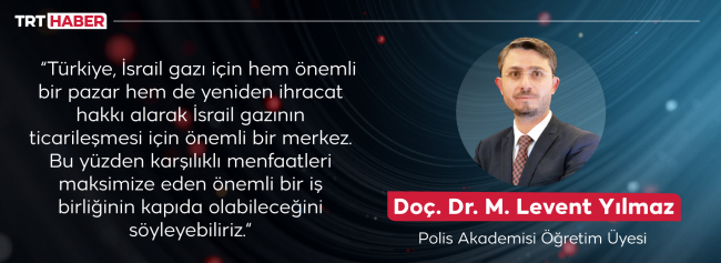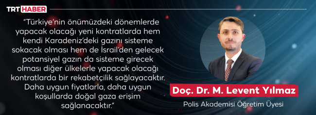 Türkiye, Rusya, Azerbaycan ve İran’dan boru gazı alıyor. Bunlar uzun vadeli kontratlarla al ya da öde hükümlerini içeriyor. Bu kontratların önemli bir kısmının 2026 yılında biteceğini biliyoruz. Türkiye’nin önümüzdeki dönemlerde yapacak olacağı yeni kontratlarda hem kendi Karadeniz’deki gazını sisteme sokacak olması hem de İsrail’den gelecek potansiyel gazın da sisteme girecek olması diğer ülkelerle yapacak olacağı kontratlarda bir rekabetçilik sağlayacaktır. Daha uygun fiyatlarla, daha uygun koşullarda doğal gaza erişim sağlanacaktır.”
