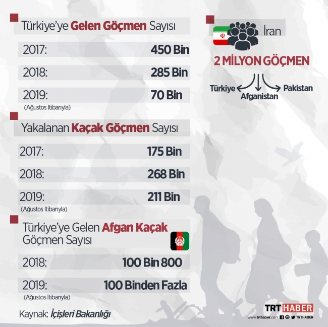İçişleri Bakanlığının bazı verilerine göz atmak gerekirse, Türkiye’ye gelen göçmen sayısı bu yıl ağustos itibarıyla 70 bin. Bu sayı 2017’de 450 bin, 2018’de 285 bin olarak kayıtlara geçti. Bazıları kaçak yollarla ülkeye giriyor.