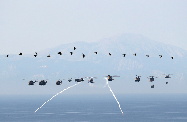 Amfibi harekat, taarruz helikopterlerinin atışlarıyla devam etti. Uzun Menzilli Tanksavar Füze Sistemi (UMTAS) atışlarında hedefler tam isabetle vuruldu. Topçu ve havan atışları da bölgeyi baskı altına aldı.