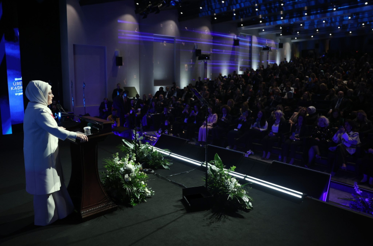 Emine Erdoğan, dünyanın kabuk değiştirdiği dönemlerinin bulunduğunu, içinde yaşanılan çağın da böyle bir değişim ve dönüşüm çağı olduğunu anımsatarak, "Yeni bir gelecek yazılıyor ve ülkeler, insanlığın ortak geleceğini tasarlamak için yarışıyorlar. Bu yarışta, kadınların, ekonomik kalkınmada önemli aktörler olduğu ülkeler, ipi göğüslüyorlar. Türkiye, kadınların her dönemde, sosyal ve kamusal alanda varlık gösterdiği, çok özel bir tarihe sahiptir. Türk kadınının girişimci ruhunun kökleri, 13. yüzyıla kadar uzanır. Anadolu'da kadınlar, teşkilatlanmış, sosyal ve ekonomik hayata katılmış, 'dünya kadın tarihinin' parlayan yıldızları olmuşlardır." diye konuştu.