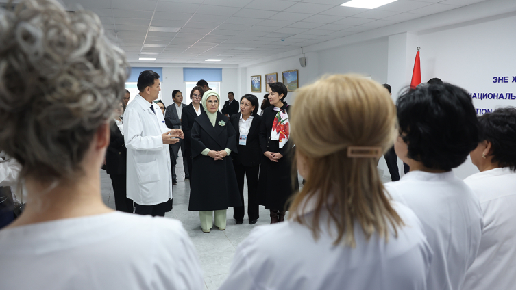 Kırgızistan Sağlık Bakan Yardımcısı Bubucan Arıkbayeva ve Merkezin Müdürü Şairbek Suleymanov'un eşliğinde, Sağlık Bakanlığına bağlı Ulusal Anne ve Çocuk Koruma Merkezi'ne Aygül Caparova ile ziyarette bulunan Emine Erdoğan, merkezde tedavi gören annelere ve çocuklara geçmiş olsun dileklerini iletti, en kısa zamanda sağlıklarına kavuşmaları temennisinde bulundu.