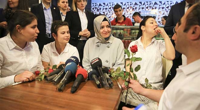 Meyve sabunu üretilen atölyede 38 yaşındaki zihinsel engelli Leyla Başer ile nar görünümlü sabun yapan ve sohbet eden Bakan Kaya'ya, meyve biçimindeki sabunlar hediye edildi.