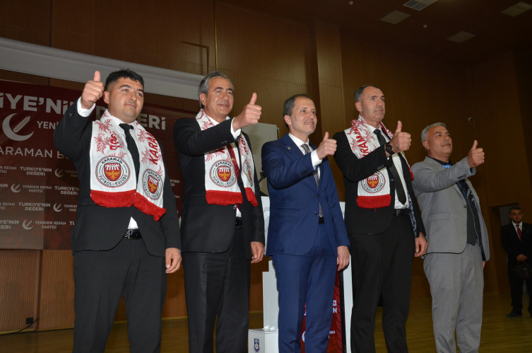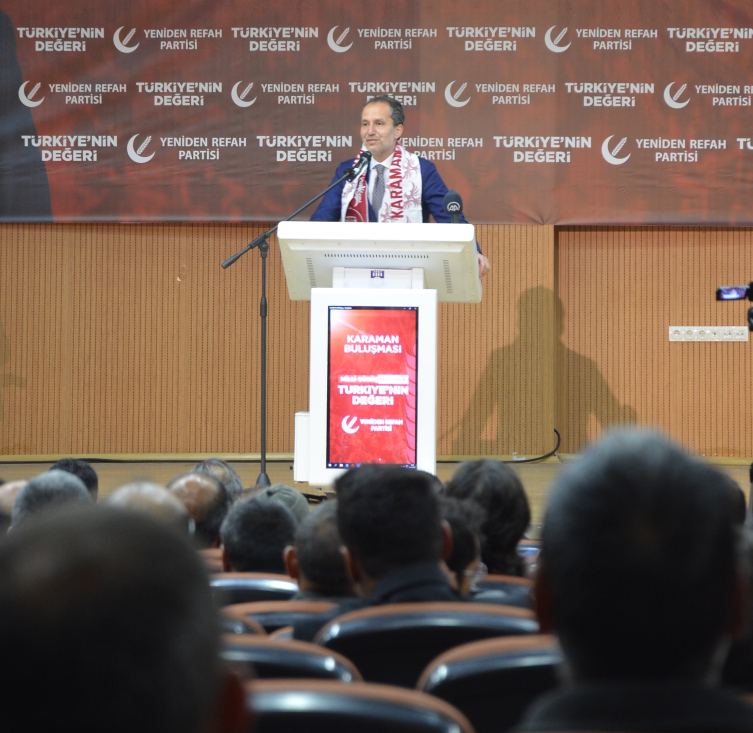 Karaman Lütfi Elvan Konferans Salonu'nda düzenlenen toplantıda konuşan Yeniden Refah Partisi Genel Başkanı Fatih Erbakan, Cumhur İttifakı'nın, karşı taraftaki yedili masanın yapısına, söylemlerine, hedeflerine bakıldığında çok önemli olduğunu söyledi.