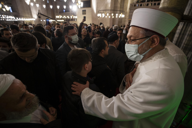 Yahya Kemal Beyatlı'nın "Süleymaniye'de Bayram Sabahı" şiirinin bazı dizelerini okuyarak hutbesini tamamlayan Erbaş, daha sonra camideki vatandaşlarla bayramlaştı.