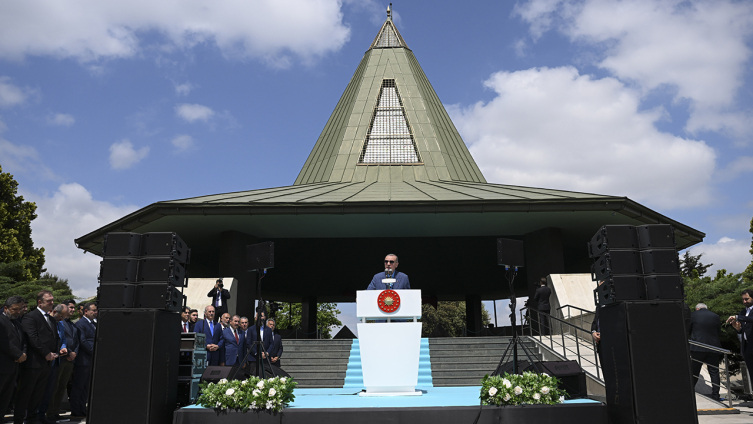 Erdoğan, vatandaşları selamlayarak anıt mezardan ayrıldı.