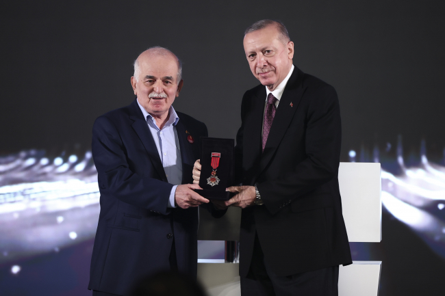 Törende, "Büyük Ödül"ün sahibi Prof. Dr. Zekai Şen, ödülünü Cumhurbaşkanı Erdoğan'ın elinden aldı.